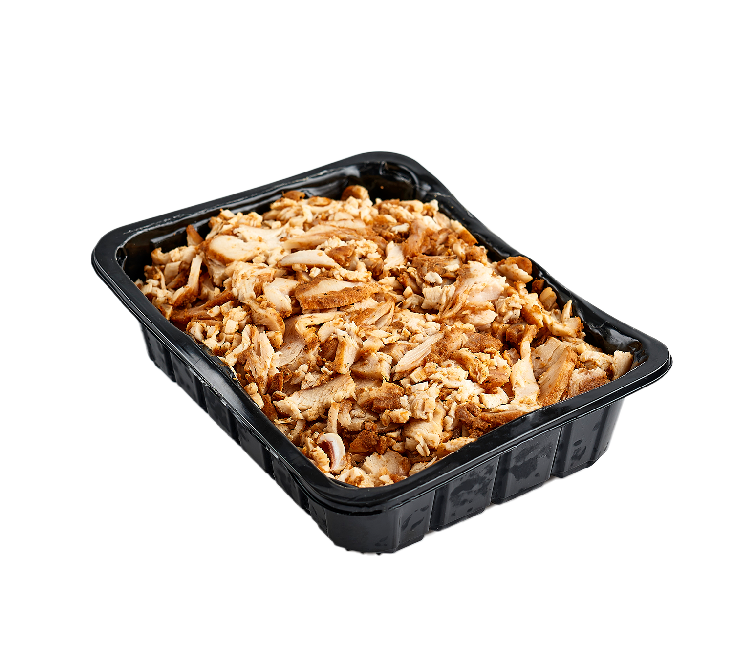 Csirkecomb filé, ivóvíz, gyros fűszerkeverék (étkezési só, fokhagyma, vöröshagyma, sárgarépa, petrezselyem, póréhagyma, lestyán, paszternák, burgonya, fűszerek, cukor, ízfokozó: nátrium-glutamát E 621, fűszerkivonatok, természetes mustáraroma; mustárolai), szóiafehérie, stabilizátor: cellulóz E 460, trifoszfát E 451, difoszfát, E 450, polifoszfát E 452, nátrium-acetát E 262, nátrium-citrát E 331.