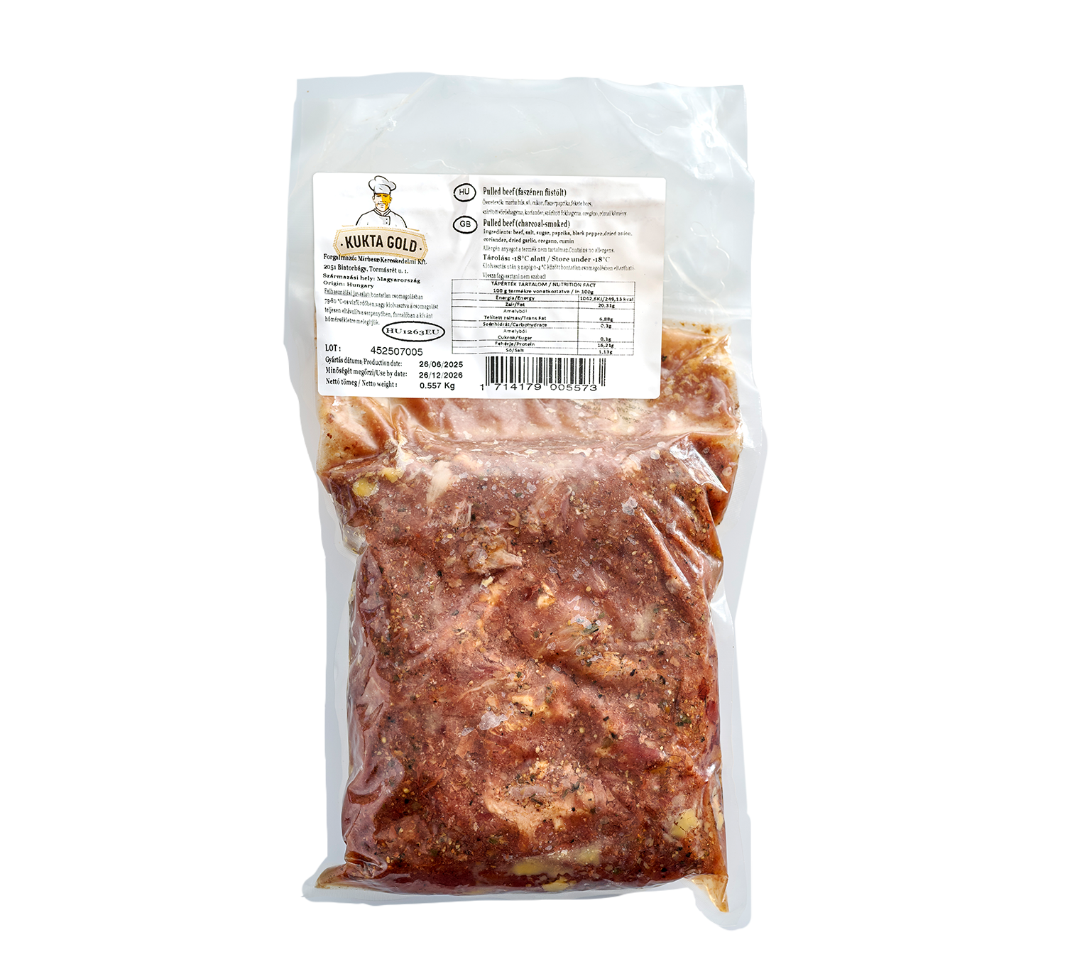 Marhahús, só, cukor, fűszerpaprika, fekete bors, szárított vöröshagyma, koriander, szárított fokhagyma, oregánó, természetes füstkivonat, római kömény.