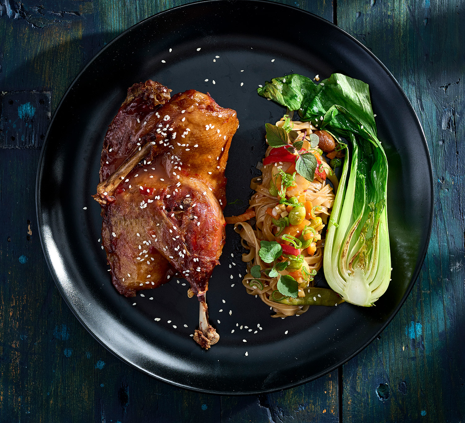 Felezett pecsenye kacsa, só, cukor, bors.