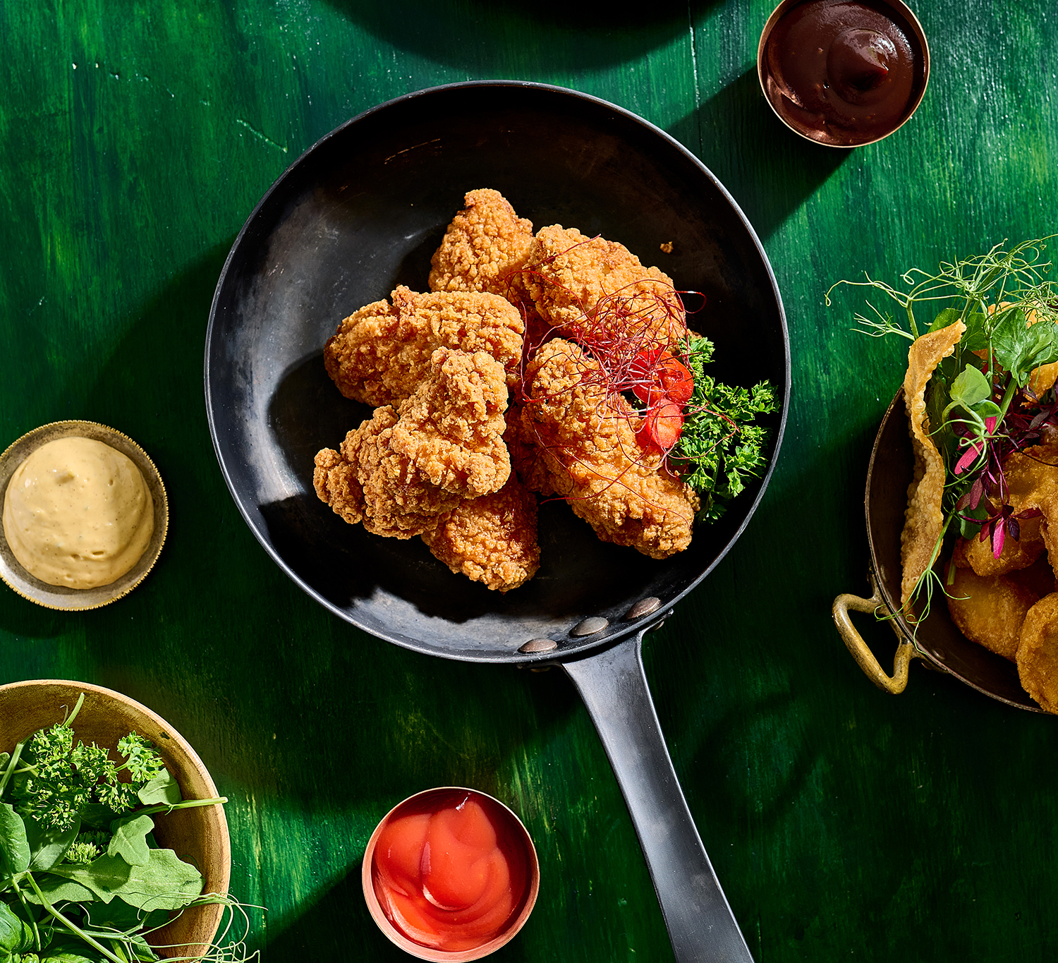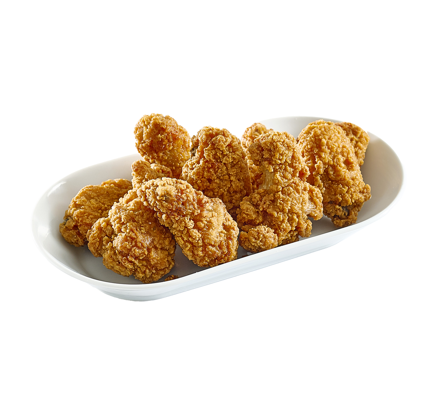 Csirkeszárny 69%, dúsított búzaliszt (búza, kalcium karbonát, vas, niacin, tiamin), napraforgó olaj, panírmorzsa (búzaliszt (búza, kalcium karbonát, vas, niacin, tiamin)), étkezési só, élesztő, színezék: paprikakivonat, módosított kukorica keményítő, étkezési só, kukorica liszt, kukorica keményítő, chili por, természetes